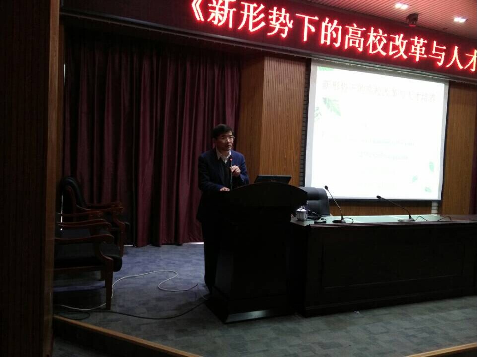 为了响应我校一年一度科技活动月的号召,同时也为了繁荣校园文化、活跃学术气氛的需要。2014年12月23日下午3点15分,经济管理系在新校区行政楼三楼报告厅举办了以“新形势下的高校改革与人才培养”为主题的专题讲座。本次讲座由宁德师范学院副校长魏远竹教授(博士、福建农林大学兼职博士生导师)主讲,参加此次讲座的有我系党总支书记游国斌教授,党总支副书记周建辉等十几位老师及一百多名学生。经管系党总支书记游国斌教授主持本场讲座。