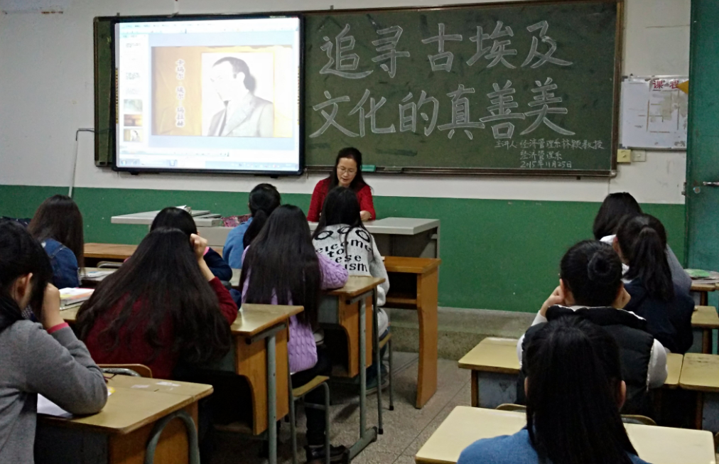 为迎接一年一度的学校科技活动月。2015年11月25日下午14点10分,经济管理系于旧校区21#207举办了一场题为“追寻古埃及文化的真善美”的专题讲座。本次讲座由经济管理系林颖教授担任主讲。出席此次讲座的有经济管理系党总支书记兼系主任游国斌、系党总支副书记周建辉等老师以及思政政治教育班的同学。
