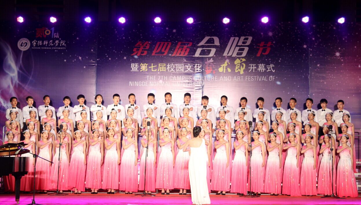 2016年5月11日晚,由中共宁德师范学院委员会宣传部和共青团宁德师范学院委员会主办的第七届校园文化艺术节开幕式暨第四届五四合唱节在我校图书馆门前隆重举行。莅临本次比赛的领导和来宾有校党委副书记徐晓丹、宣传部部长赵公弼,担任本次比赛的评委老师有福建省音乐家协会会员、宁德市音乐家协会顾问杨才燊先生等。大赛以“家国情怀,筑梦宁师”为主题,结合易班平台进行抽奖和比赛现场直播,为到场师生观众带来了震撼心灵的视听盛宴。