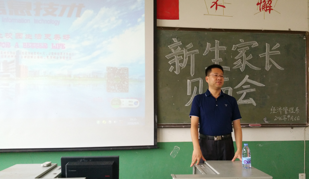 6日下午,我系新生家长见面会在21号楼208教室召开。游国斌教授为到场新生家长详细介绍了我校及我系的具体情况,周建辉副书记为新生家长解答了一些专业上的疑惑,最后新生的辅导员邱文君老师发表讲话,为本次新生家长见面会作了总结。