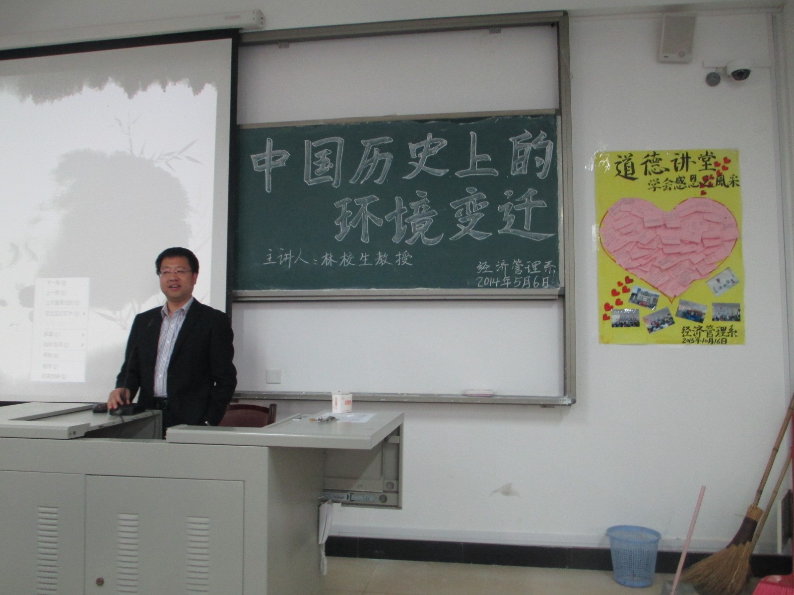 经济管理系于2014年5月6日下午邀请到宁德师范学院资深教授林校生(原经管系主任)开展了一场题为“中国历史上的环境变迁”的专题讲座。2点45分,在求真楼Bb201讲座开始,经管系党总支书记游国斌教授致开讲词。出席此次讲座的有经管系全体教师及百余名同学。