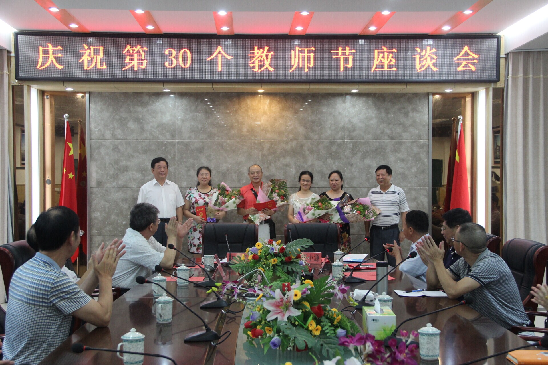 2014年9月10日下午,我校在求知楼A308会议室召开第30个教师节表彰座谈会,认真学习习近平总书记9月9日在北京师范大学考察时的重要讲话精神,庆祝第30个教师节到来。我系吴家林老师获得我校第一届“我心目中的好老师”称号,游天嘉老师被评为“宁德市优秀教师”,林颖老师作为从教25周年教师代表做了讲话。校领导为他们颁发荣誉证书,学生代表献花。
