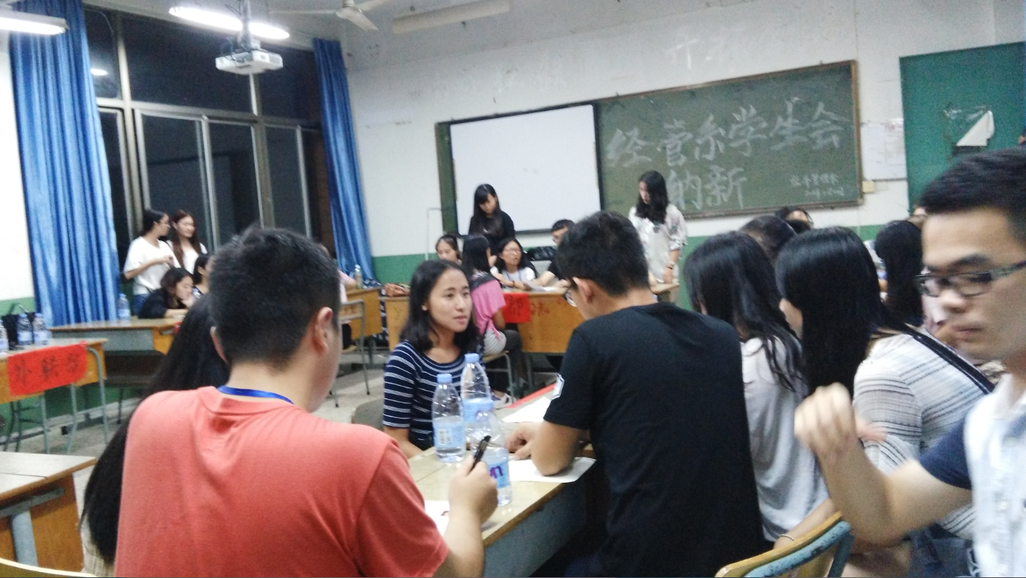 9月11日晚上,经济管理系团委学生会于蕉城校区21号楼207、208教室进行纳新。学生会组织本次纳新活动。