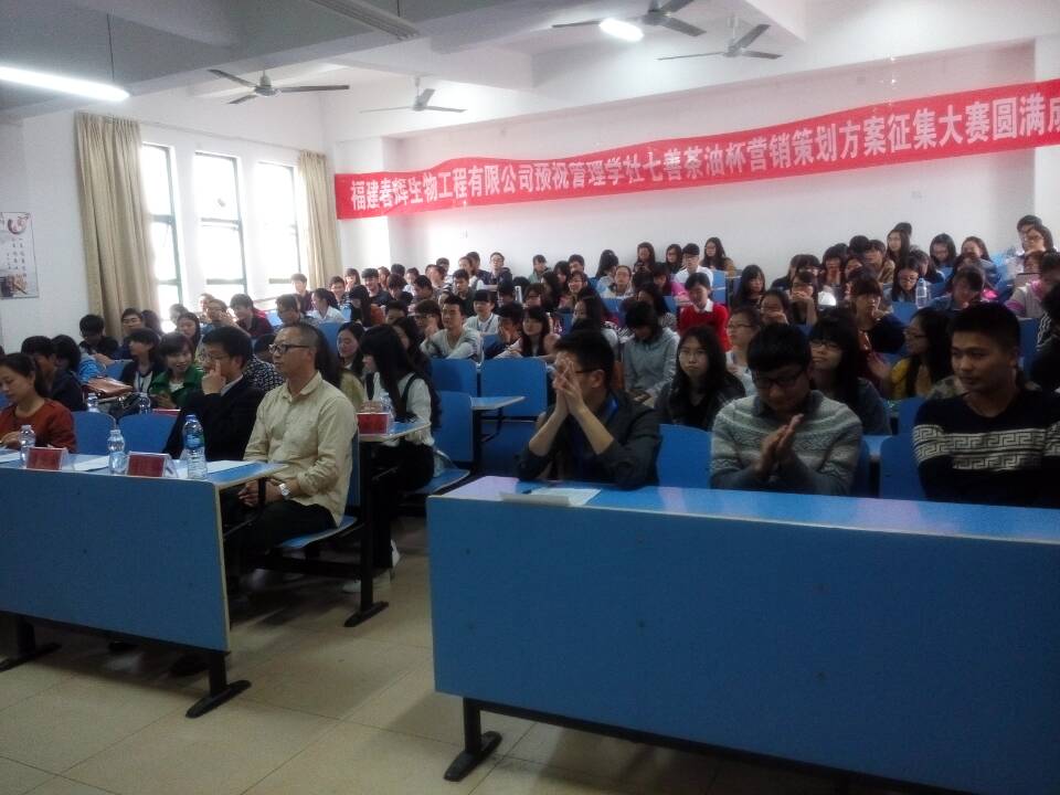 2015年4月25号下午3点,宁德师院管理学社于求真楼BB201举行了宁德师范学院第四届“七善油茶杯”营销策划大赛启动仪式。本次启动仪式邀请到了经济管理系党总支书记兼系主任游国斌、系党总支副书记周建辉、经济管理系主任助理兼系市场营销教研室主任游天嘉老师等多位老师。此外,大赛赞助商福建春辉生物工程有限公司的相关负责人也出席了本次启动仪式。
