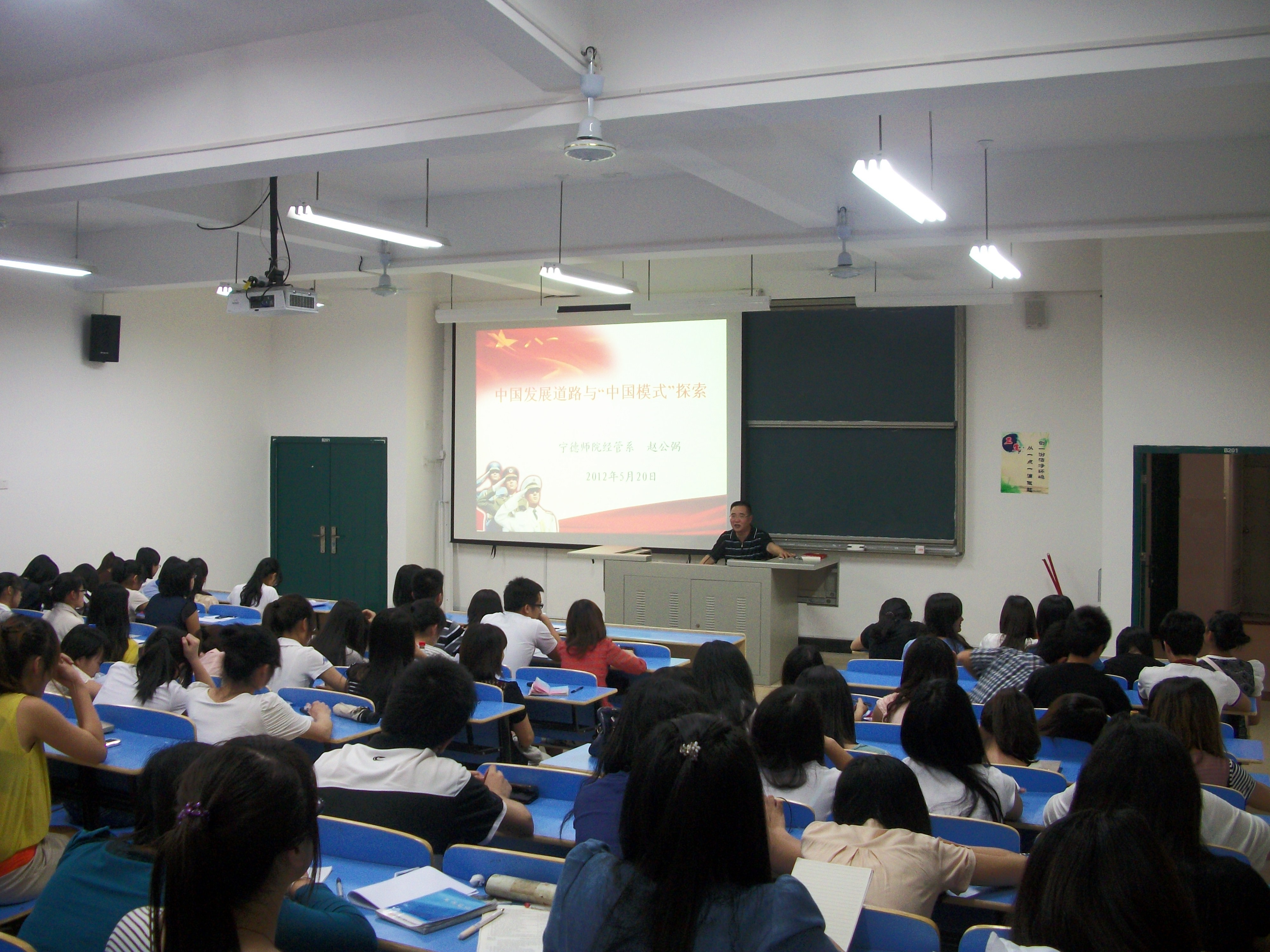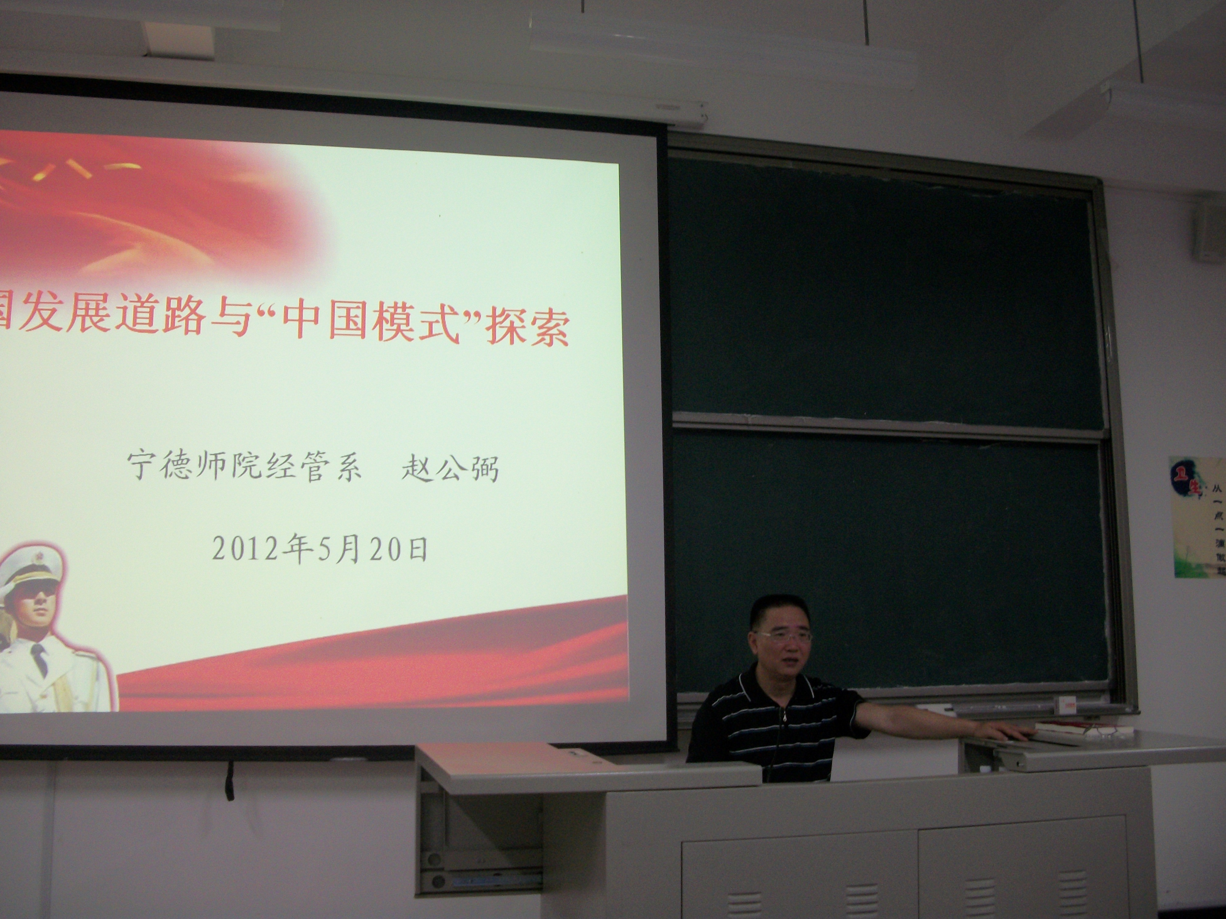 改革开放和现代建设的30多年,中国从贫苦落后的国家一跃而起成为世界第二大经济体。中国的发展道路是一个奇迹,一个时代的奇迹。为了让我系同学更深入的了解改革开放三十年来中国的发展道路,感受中国给世界带来的震撼。我系党总支书记赵公弼于2012年5月24日晚7点在求真楼B区201教室开展了以中国发展道路与“中国模式”探索为题的专题讲座。