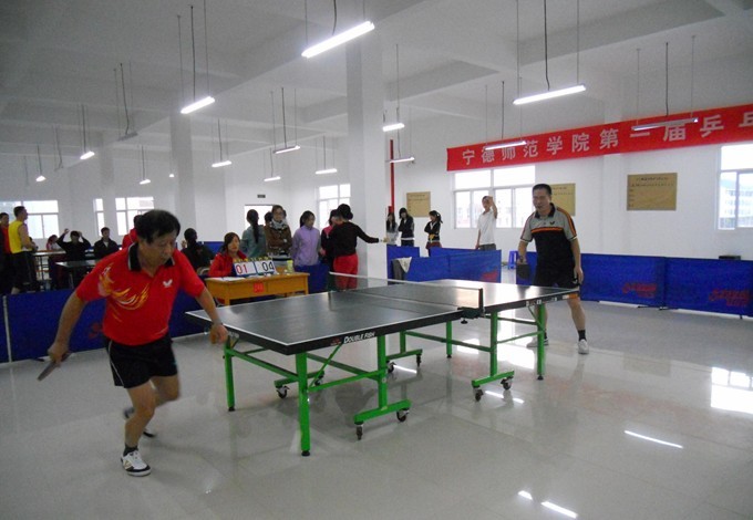 2011年12月3日,宁德师范学院第一届乒乓球赛拉开序幕,首先,由教职工赛事点燃战火。此次比赛共有16支队伍参加,在我系党总支书记赵公弼老师的带领下,我系教师团体过五关斩六将,克服了重重困难,在16支强队中,脱颖而出,取得了团体比赛冠军的好成绩,为接下来的比赛开了好头。同时,在赵书记的鼓舞激励之下,我系龚梓兵老师获得男子单打亚军,游天嘉老师获得了女子单打冠军,为我系争光添彩,也为后面的学生乒乓球赛树立了优秀的榜样。