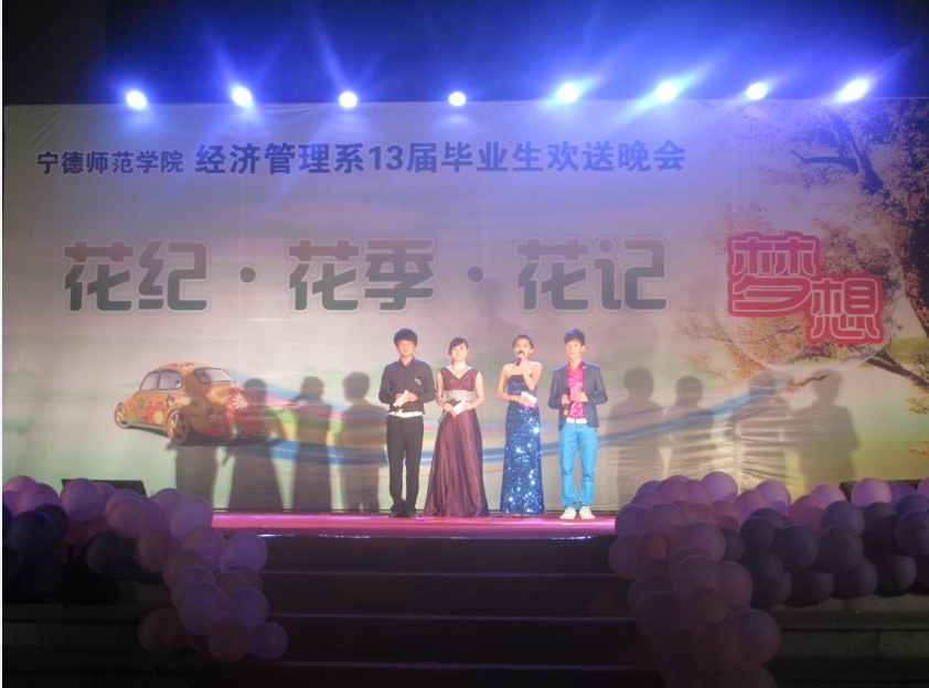 晚会以刚柔并济的节目《咏春》拉开序幕,小品《不想说再见》表现出对我系毕业生的难舍之情。校宣传部赵公弼部长结合当下最热的中国梦为毕业生们送上祝福并演唱了一首《我是中国人》。毕业生代表黄汉杰发言对三年来老师的教导表示感谢。音乐剧《毕业留声》将晚会的感情推向高潮,不少同学们已经止不住在眼睛了打转的泪水,分别的无奈全化成这泪水痛痛快快的哭了出来。欢送晚会在朗诵《明天,我们毕业》中圆满落幕。精彩的节目换来了毕业生一阵又一阵的掌声。典礼从头至尾洋溢着浓浓的温馨留恋之情。