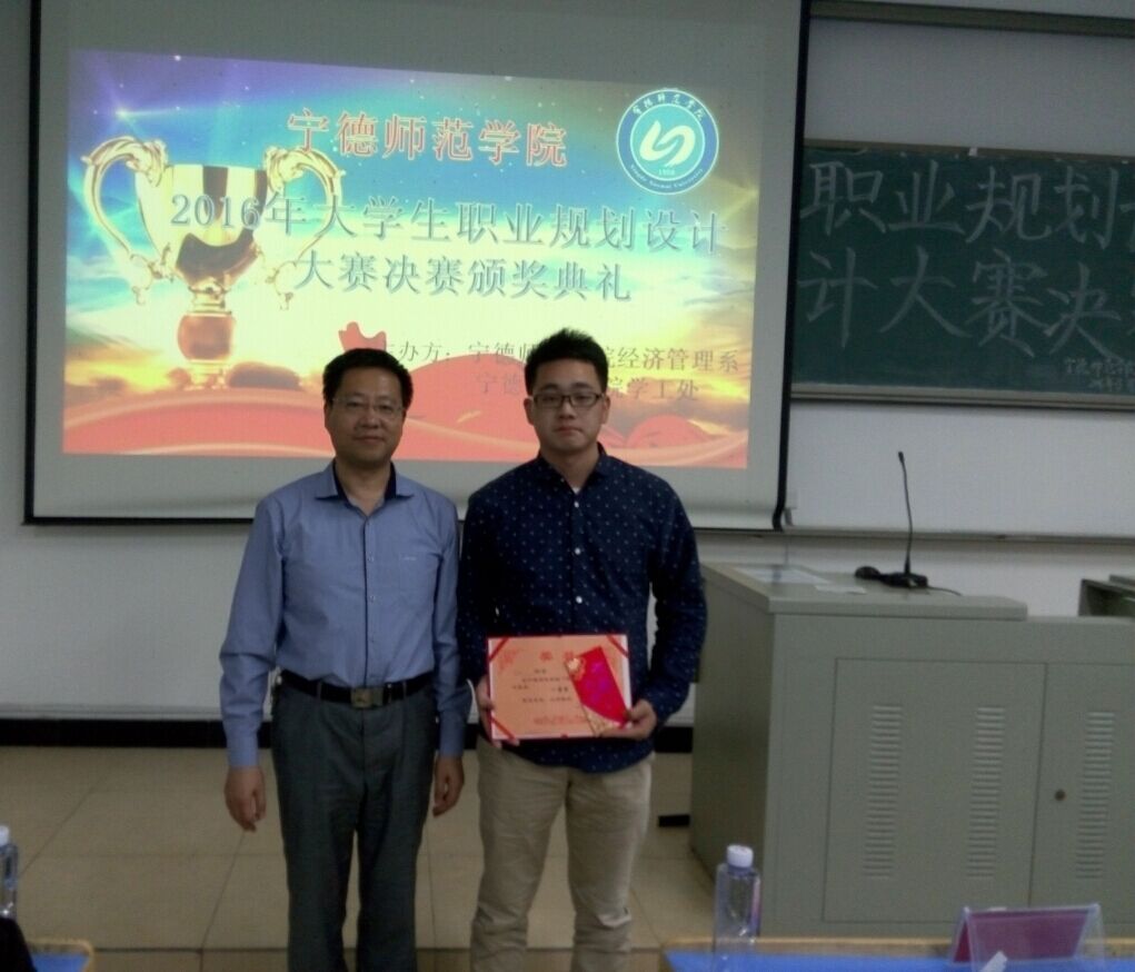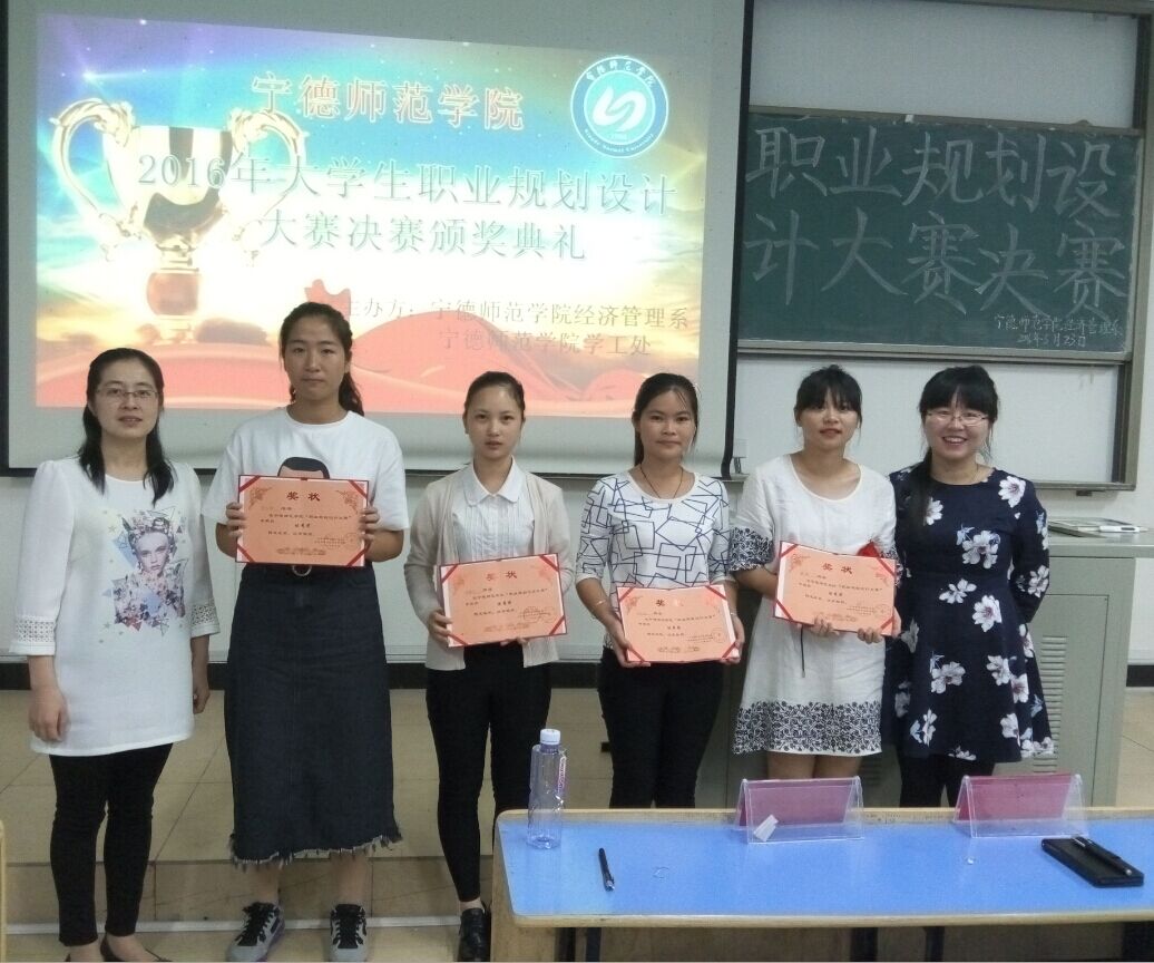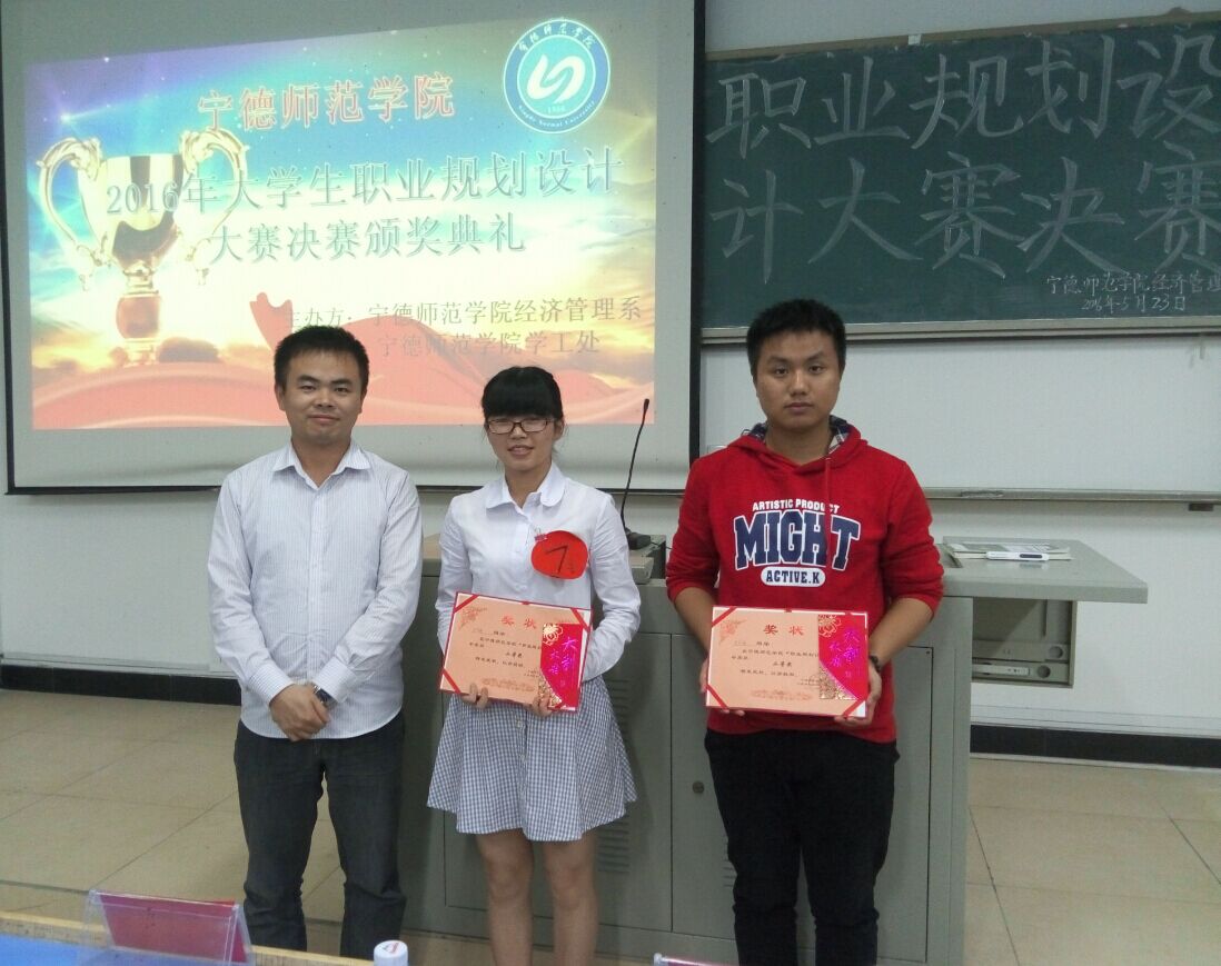 5月23日晚,宁德师范学院2016年大学生职业规划设计大赛决赛在求真楼B-101隆重举行。本次大赛由宁德师范学院经济管理系和宁德师范学院学工处主办。经济管理系主任、党总支书记游国斌、系党总支副书记周建辉、学工处就业指导中心主任钟春果、经管系团委书记王佳佳、系学生支部书记周俪等领导和老师应邀出席。
