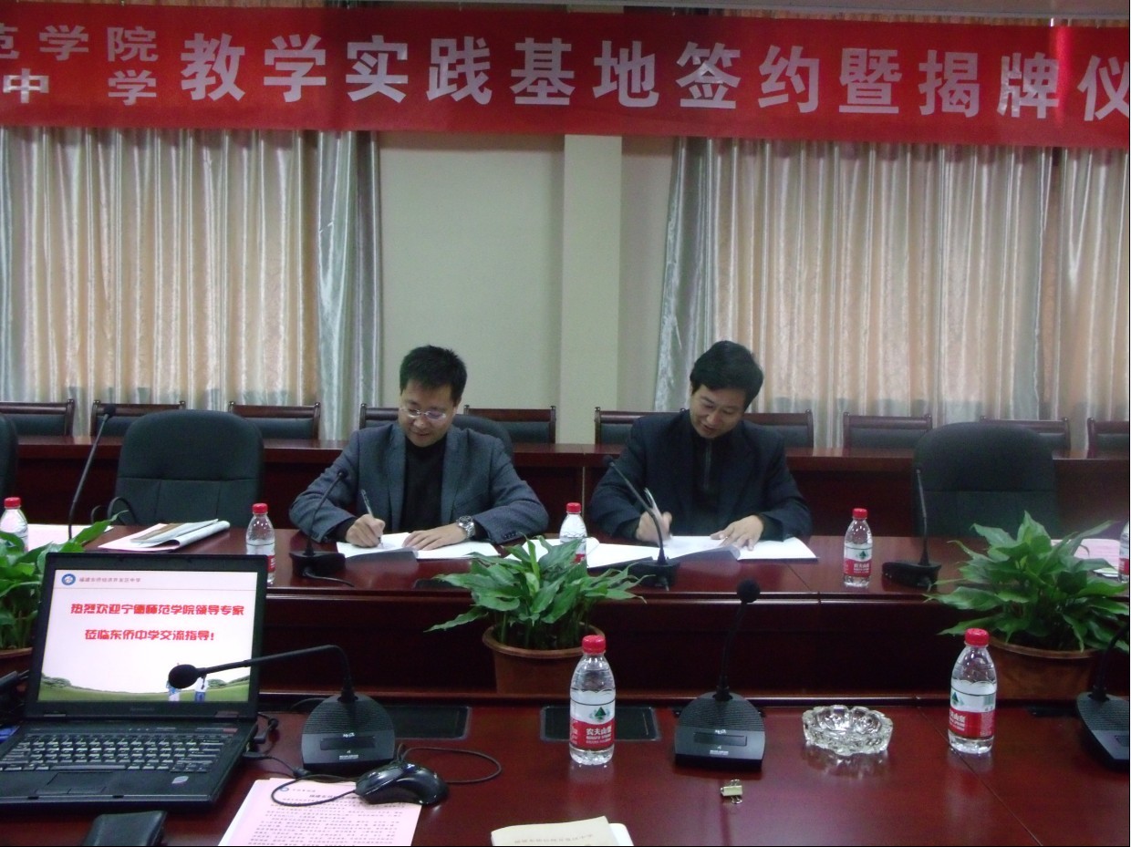 会后,游国斌教授和刘美堂校长分别代表我校和东侨中学签署了实践基地合作协议书,并在东侨中学校门口进行了揭牌仪式。