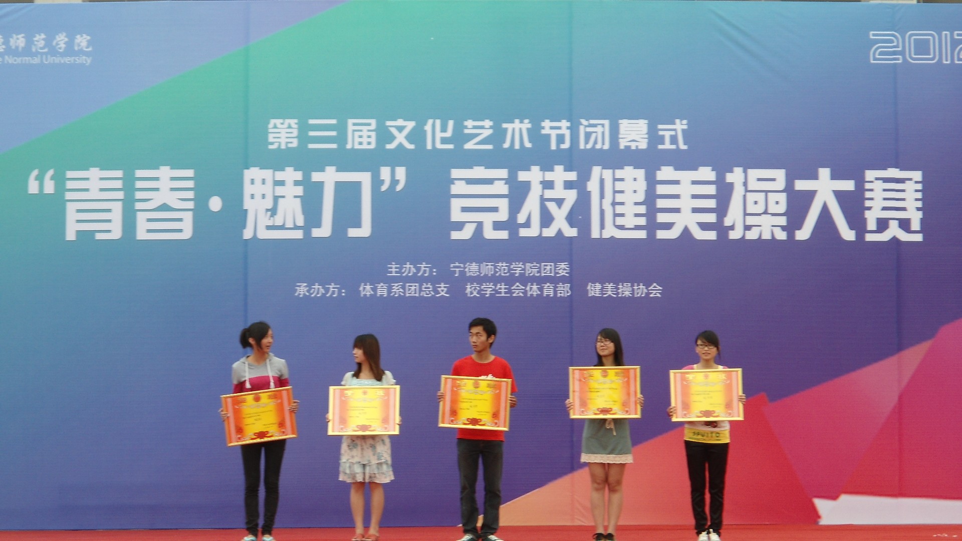 为了加强我校校园文化建设,营造科学、活力、和谐的校园氛围。进一步丰富同学们的课余文化生活,展示我校大学生健康向上、青春活力的风采。我校于2012年5月29日下午4点,在图书馆前举办了第三届文化艺术节竞技健美操大赛。