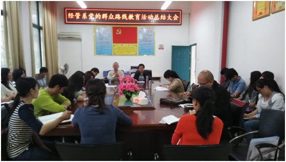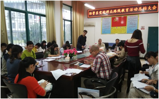 根据省委以及我校党委的统一部署,经济管理系党总支于2014年10月29日下午4点在求真楼D区经管系会议室成功召开“经济管理系党的群众路线教育实践活动总结大会”。参加此次总结大会的有:经济管理系党总支书记游国斌教授、党总支副书记周建辉老师、以及经管系的其他8位党员教师。参加会议的还有经管系11位预备党员,2名学生代表,2名群众代表,2名民主党派代表。此次大会由经管系党总支副书记周建辉老师主持。