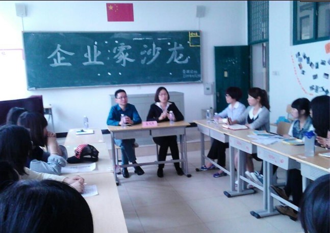 2014年4月29日下午3点,管理学社于求真楼BB203举行企业家沙龙活动。本次活动我社诚邀宁德市宏美时代百货有限公司总经理黄修福先生、营运部经理彭焰女士、马克华菲品牌负责人李兰妹女士、马克华菲店长林玲女士,分别站在不同管理层分享创业的心路历程,意义深远。