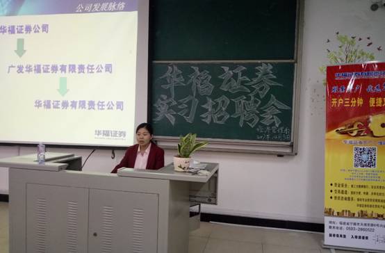 2017年4月5日下午4点,经济管理系于东侨校区求真楼bb101举办了“华福证券实习招聘会”,经管系部分大三同学参加了本次招聘会。
