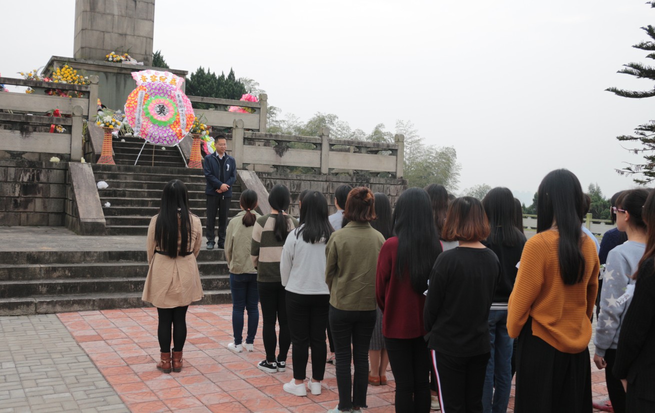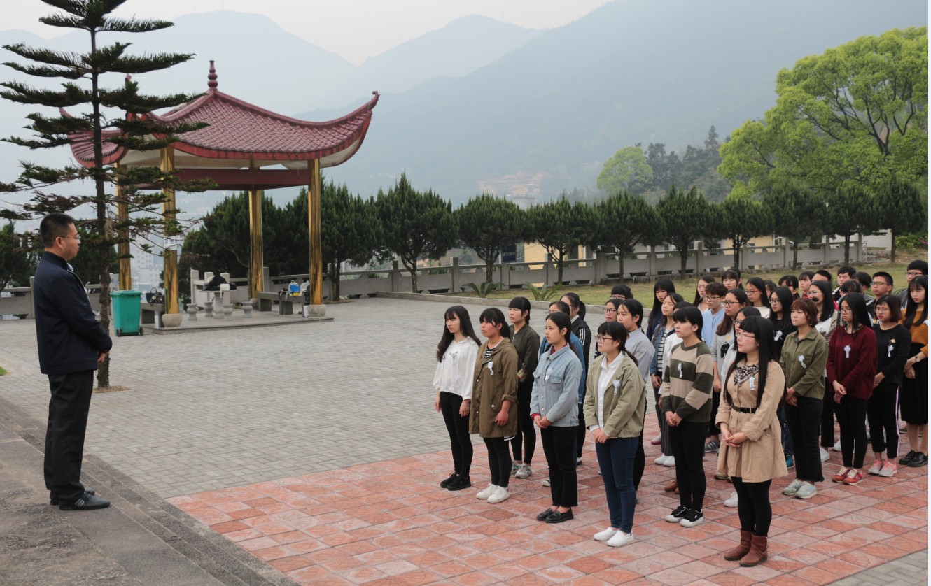 2017年4月6日上午9点,经济管理系系主任兼系党总支书记游国斌、系团委书记王佳佳两位老师带领15级思想政治教育班的同学来到烈士陵园,祭奠革命先烈。本次祭扫仪式由王佳佳老师主持,大家首先为先烈默哀三分钟。默哀结束后,游国斌教授为师生们讲述闽东红色历史。