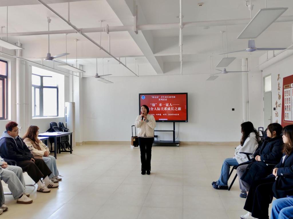 为促进宿舍成员间的沟通交流,营造和谐友爱的宿舍氛围,4月1日,我院邀请林新霞老师在第三园区党团活动室内开展“师友说”青年成长面对面系列活动之“缘”来一家人——宿舍人际关系成长之旅团辅活动,2024级市场营销1班全体同学到场参加活动。