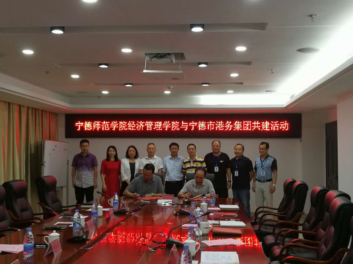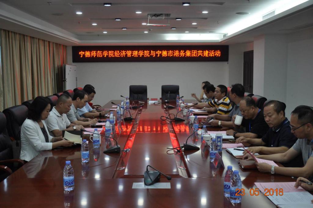 5月23日下午,经济管理学院党委书记郑立文与宁德市港务集团有限公司党委书记、董事长严春辉,在港务集团有限公司会议室签订《宁德师范学院经济管理学院 宁德市港务集团有限公司共建合作协议》。与郑立文书记同行的经济管理学院党委副书记兼工会主席陈新柯、副院长邱汉周、酒店管理系主任詹岚、财务会计系主任王爱清、工会副主席龙厚印,以及港务集团总经理陈平、党委副书记兼工会主席吴培谦、副总经理刘元适、纪委书记林兆敬等共同见证签字仪式。