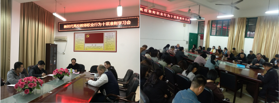 下午还召开经济管理学院全体教职工大会,院纪检委员刘涛代表院党委宣读《准则》和《指导意见》,要求我院全体教职工要全面理解和准确把握《准则》和《指导意见》,争做教书育人的表率。