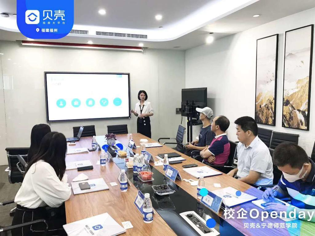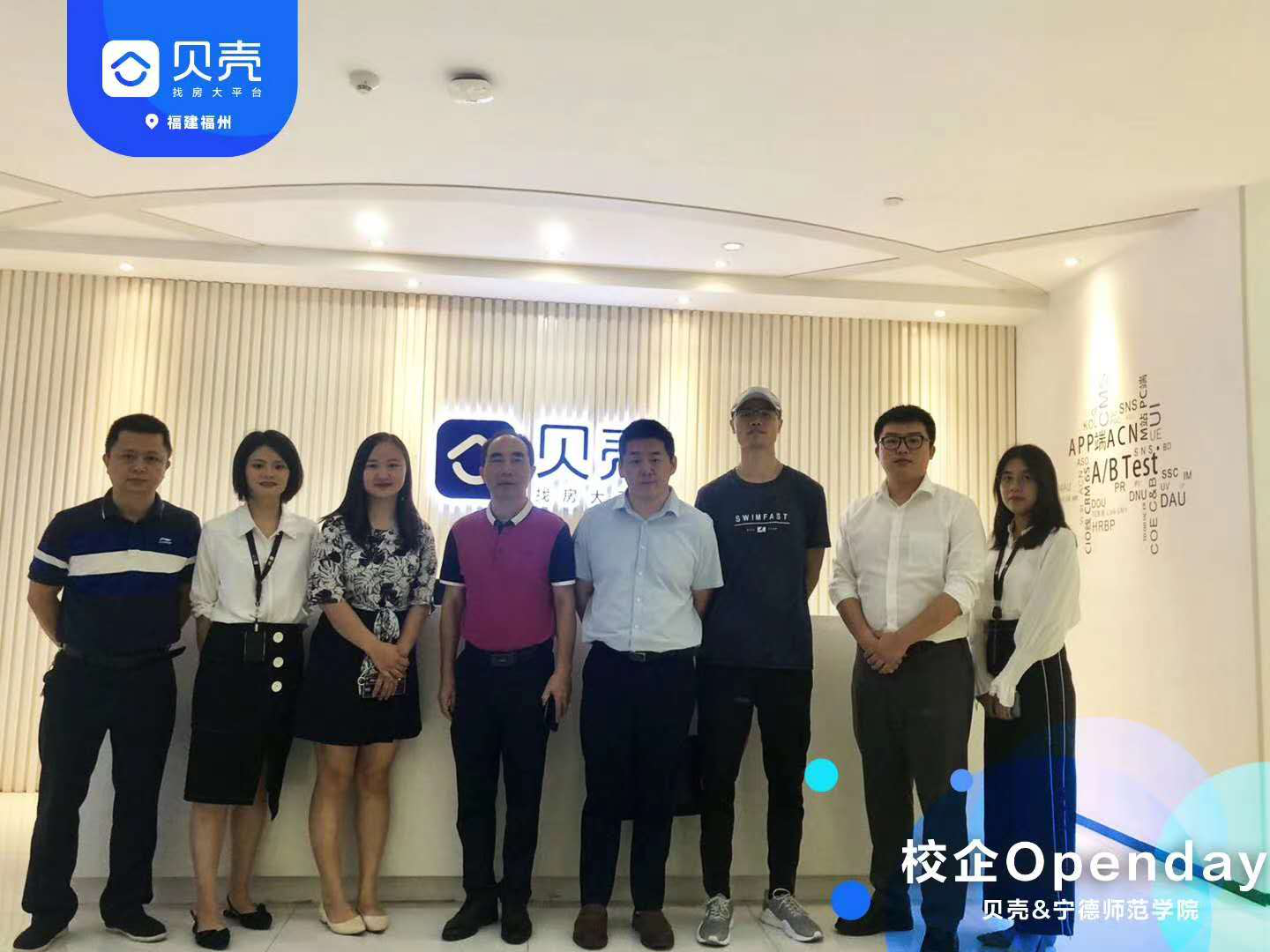 2020年8月20日上午,宁德师范学院经济管理学院一行人在院党委书记、院长郑立文教授的带领下参观了贝壳找房信息科技有限公司福州分公司,就针对校企战略合作框架进行洽谈,经济管理学院办公室主任邓伟老师,市场营销系主任任昌满老师,创新创业教研室主任储苏凯老师等参加洽谈会。