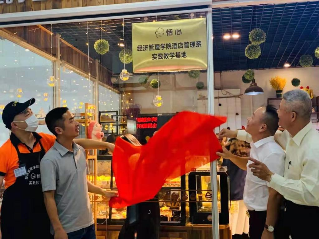 2021年5月14日,经济管理学院与资产后勤管理处恬心烘焙坊合作成立的实践教学基地在第二食堂开幕揭牌,学院副院长邱汉周副教授、酒店管理系黄士礼教授出席揭牌仪式。专业老师后续将在此基地开展《西点制作》课程教学。
