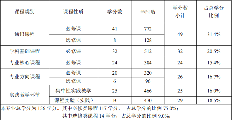 七、课程结构比例表