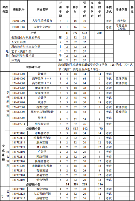 2.4 掌握市场营销学、市场调查、消费行为学、营销策划、网络营销、广告理论与实务、战略管理等专业知识,具备开展营销活动的专业技能;