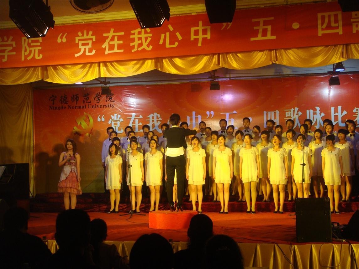 为庆祝建党九十周年,宁德师范学院于2011年5月4日晚7点在老校区学术报告厅举行了“建党九十周年——党在我心中”为主旋律的五.四红歌大赛。