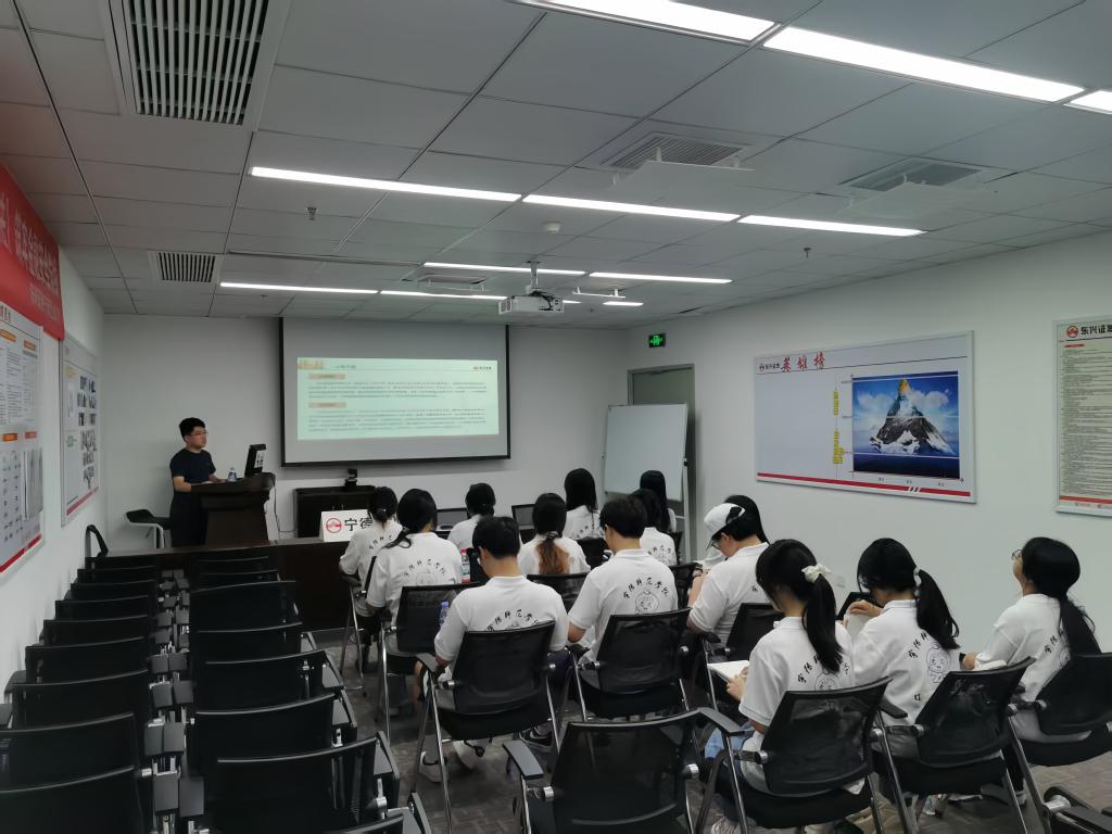 活动中,东兴证券林翰老师以“证券业务全景解析”为主题开讲,结合案例拆解各业务运作逻辑与实操模式,助同学们搭建证券行业整体认知框架。