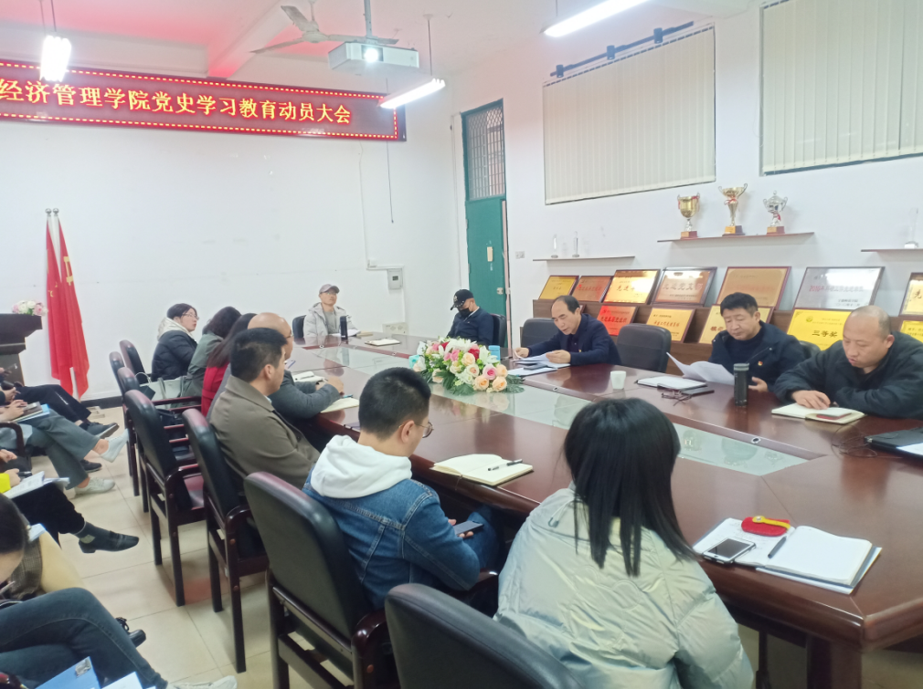 3月23日下午,经济管理学院召开党史学习教育动员大会,深入学习贯彻习近平总书记在党史学习教育动员大会上的讲话精神和学校党史学习教育动员大会精神,对学院党史学习教育进行动员部署。学院党委书记、院长郑立文主持会议,全体教职员工参加会议。