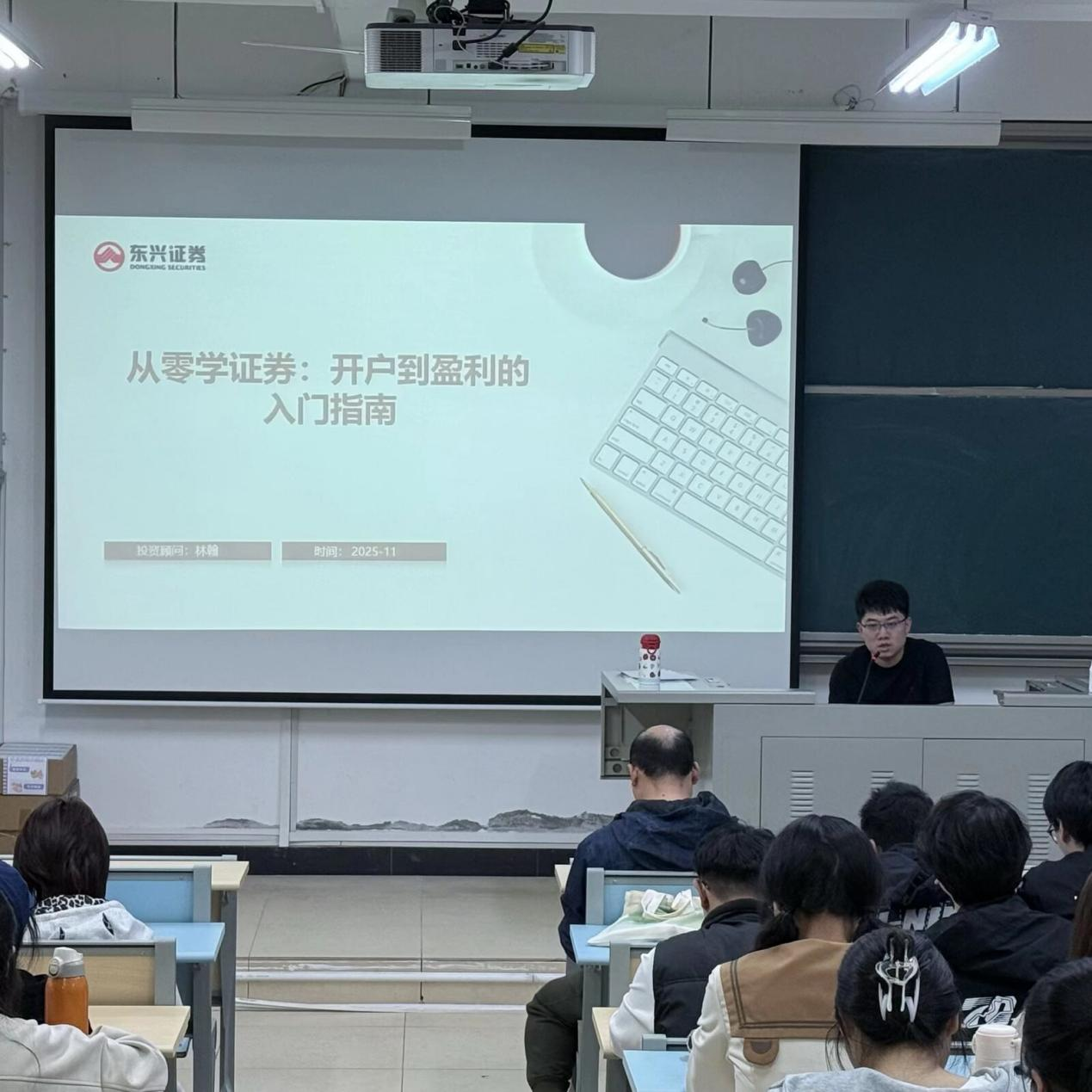 为进一步深化学生对金融市场运作的理解,将课堂理论和实践操作紧密结合,锻炼学生的投资分析能力、风险管理技巧以及心理素质。2025年11月10日,我院在BB201举办了第二届模拟炒股大赛讲座。本次活动邀请到东兴证券公司的林翰顾问来开展主题为“从零学证券:开户到盈利的入门指南”的宣讲讲座。