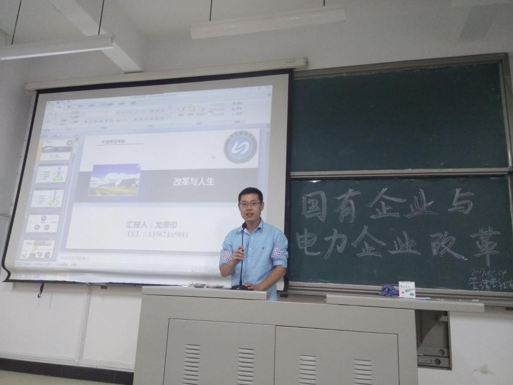 10月24日,经济管理学院教师龙厚印博士在求真楼应管理学社邀请为该社100多位同学开设“国有企业与电力企业改革”专题讲座。