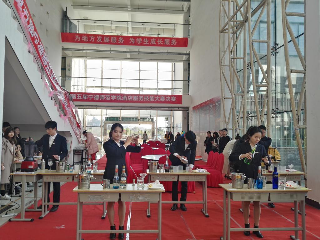 12月26日下午,经济管理学院第五届酒店技能服务大赛决赛在求真楼大厅举行。经济管理学院院长游国斌、党委书记郑立文、副院长邱汉周、党委副书记陈新柯出席本次大赛。宁德万达嘉华酒店人力资源部副总监王新宇先生一行应邀莅临现场观摩指导。