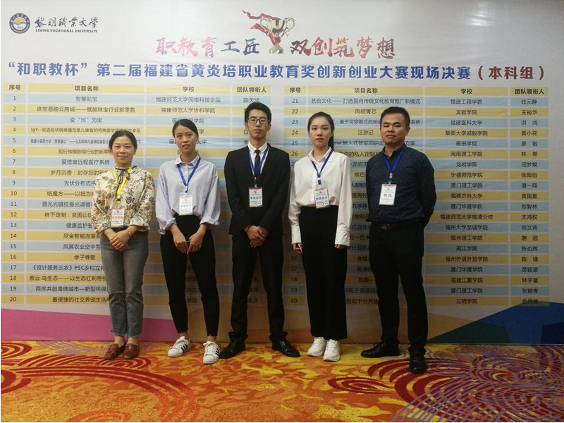 10月29日,“和职教杯”第二届福建省黄炎培职业教育创新创业大赛总决赛在泉州黎明大学落下帷幕。我校创业团队“嘴巴驿站”喜获铜奖,项目指导教师游天嘉、钟春果获“优秀指导教师”。这是我校自参加该项赛事以来,获得的又一次重大突破。