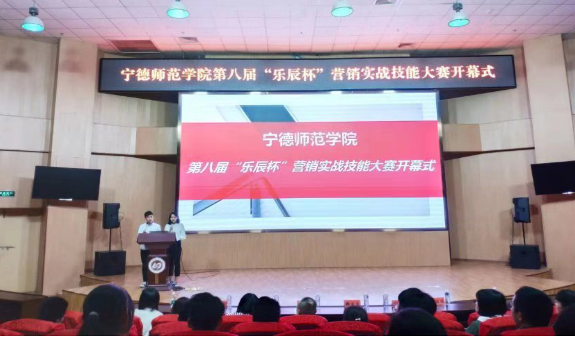 11月22日,宁德师范学院第八届“乐辰杯”营销实战技能大赛开幕式在图书馆报告厅举行。此次大赛由宁德师范学院经济管理学院团委学生会主办、学生社团联合会管理学社承办,福建乐辰科技智能有限公司、中国移动通信集团有限公司宁德分公司协办。出席本次开幕式的领导嘉宾有经济管理学院副院长邱汉周,教师周俪、王佳佳、欧洋婷、罗清,以及协办方乐辰智能代表、移动公司代表。开幕式由管理学社社员唐宾、高天慧主持。