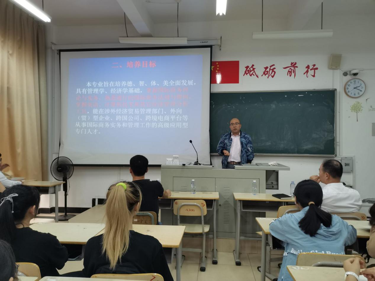 随后,院教学科研办主任周俪、国际商务系主任袁科峰、旅游管理系主任陈婕、酒店管理系主任詹岚、会计系主任王爱清等老师分别从专业背景、培养目标、课程体系构建、学制和学分要求、教资队伍等几个方面进行了对新同学们进行了专业认知教育。教师代表冯守东教授,游天嘉副教授,李杰中副教授,谢新丽副教授,林芊妍副教授,林翠生老师鼓励新生设定自己的目标,积极参加学院举办的各种竞赛,丰富自己的大学生活。