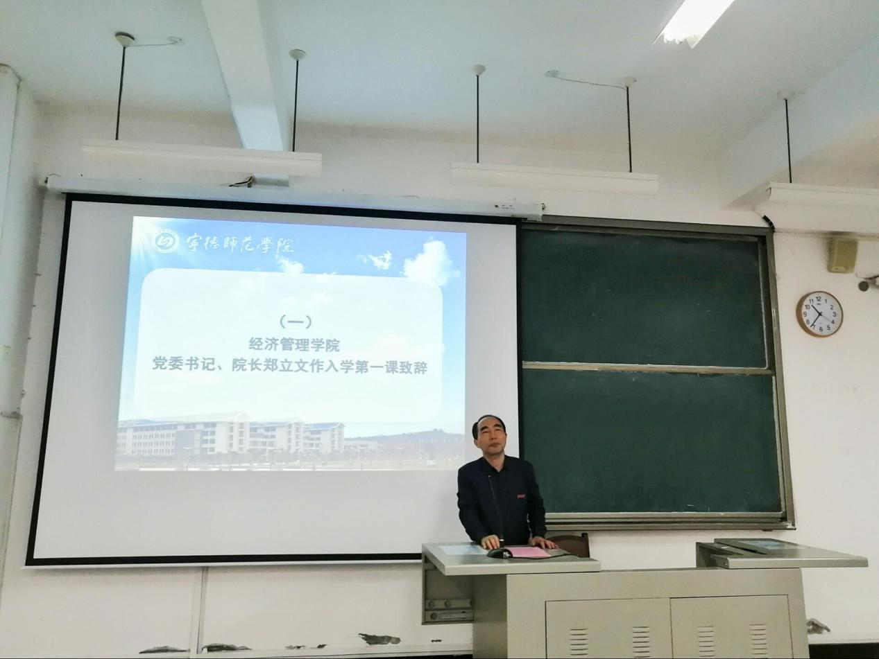 经济管理学院党委书记、院长郑立文,党委副书记陈新柯,副院长邱汉周,分别在各专业进行入学第一课的致辞。学院领导对新生到来表示热烈欢迎,希望他们能够在经济管理学院开启自己精彩的大学生活,对新生提出三点建议:一是要用自信的态度对待学习;二是对事业追求要有自强态度;三是在生活中要学会自立。