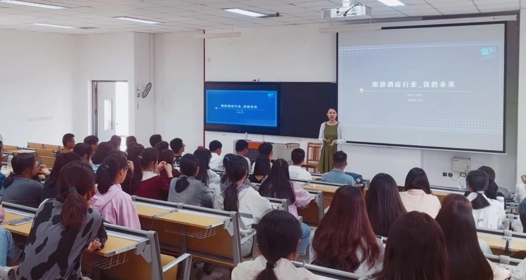 陈韵竹介绍了公司的发展情况、校企合作项目以及特色优势,就精英实习生计划做了重点介绍,还应邀为2020级酒店管理专业学生开展了一场专业认知讲座。