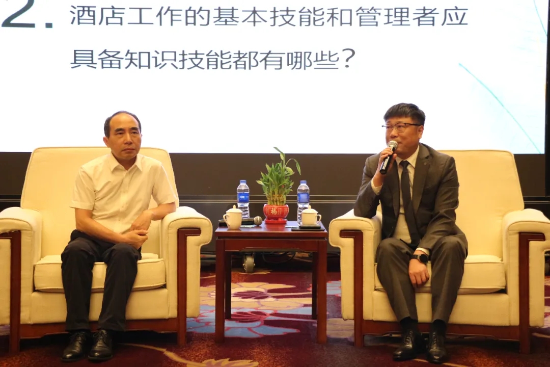 活动伊始,郑立文书记和嘉华酒店总经理乌恩琦先生作为现场嘉宾,面对面为学生提供关于学习、实习、毕业、就业等方面的专业指导。郑立文就学生关心的校企合作、实践教学等进行回答,指出要进一步加强学院与酒店的产教融合。乌恩琦分享了他二十多年的酒店从业经历,并就学生提问的关于酒店的相关问题进行了详细解答。嘉华酒店的部门总监也为同学们分享了各部门的情况,并就大家特别关心的实习问题做了详细介绍。