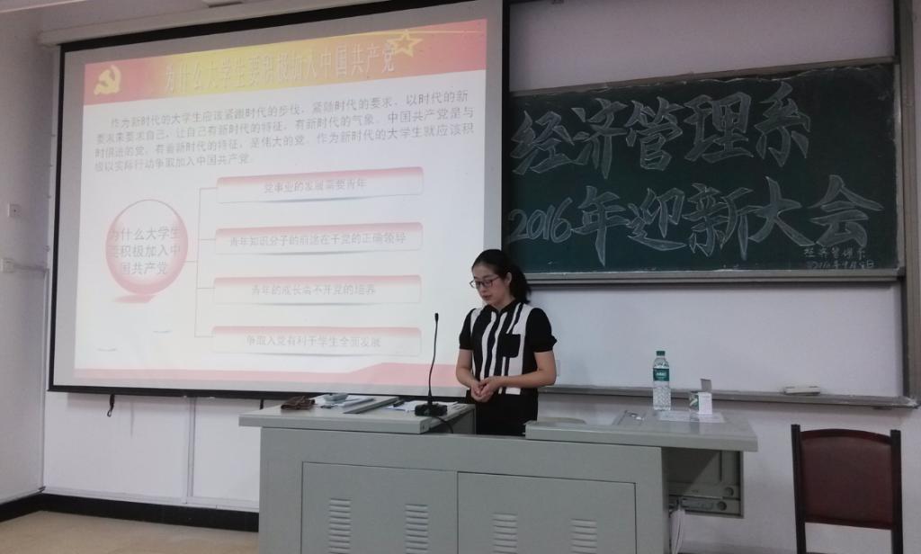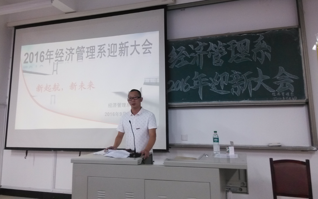 9月8日下午,经济管理系在东侨校区求真楼-b201教室召开了2016年迎新大会。参加本次大会的有系党总支副书记周建辉老师、系党务秘书兼学生支部书记周俪老师、系团委书记王佳佳老师、专职辅导员以及我系全体新生。