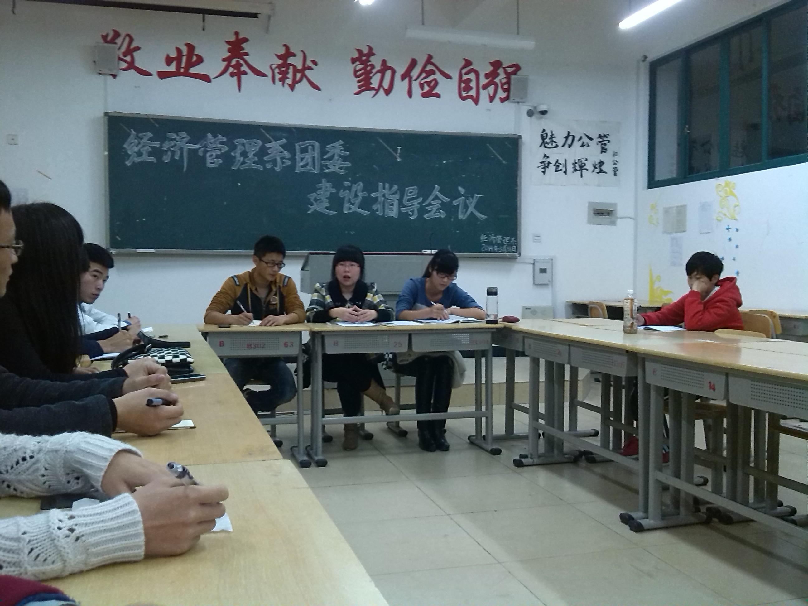 为了进一步落实校团委的工作部署,更好地体现我系学生对团委工作的热情,提高我系团委工作的质量,我系于2014年3月31 日晚六点半在新校区Bb304召开了一场经济管理系团委建设指导会议,由经济管理系团总支书记王佳佳老师主持,参加本次会议的有我系各班学生代表,相关部门的学生会干部及隶属于我系的社团负责人。