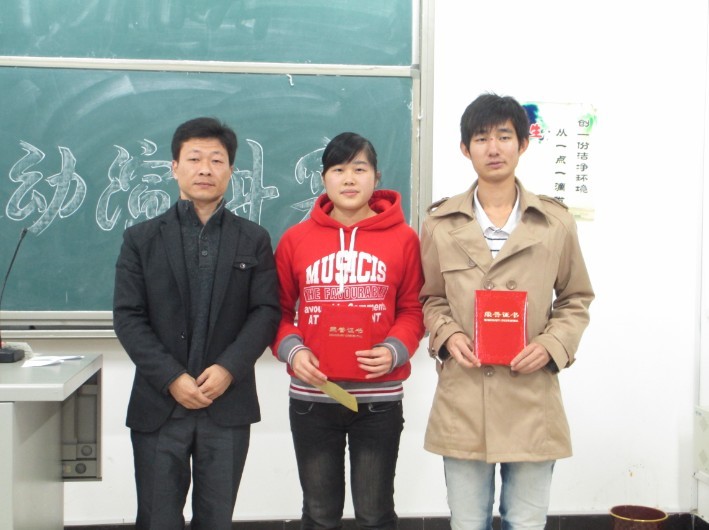 参赛选手以饱满的精神、真挚的情感,最热情的语言讴歌了爱国志士的壮志豪情,用最真诚的祝福传递出对祖国的一片深情,展现了当代青年奋发进取、积极向上的精神面貌。精彩纷呈的演讲,高潮迭起,选手们精彩的演讲引起了全体师生的阵阵掌声。经过激烈的角逐,比赛产生了一等奖,二等奖、三等奖及优秀奖。评委老师为选手颁发证书和奖品,并合影留念。