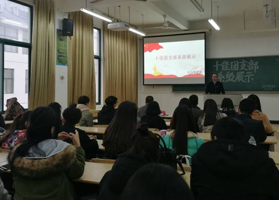 2017年3月10日下午4点经济管理系于东侨校区求真楼bb304召开十佳团支部系级展示会。参加本次展示会的有经管系系主任兼党总支书记游国斌、党总支副书记周建辉、团委书记王佳佳、学生党支部书记邱文君以及各班团支部代表、部分学生会成员。共有7个十佳团支部参与展示。