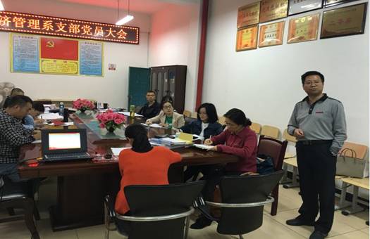 2016年11月8日下午,经济管理系党总支在系会议室召集全系教师党员举行学习贯彻党的十八届六中全会精神专题学习会。学习会上,经管系党总支书记游国斌同志作了题为《踏上全面从严治党的新征程——党的十八届六中全会精神解读》的专题报告,向与会的党员们介绍了党的十八届六中全会的背景、会议议题以及取得的成果,传达了党的十八届六中全会精神,详细解读了党的十八届六中全会提出的14个新提法和29个新亮点,以及新修订的《中国共产党党内监督条例》中的8个新提法和11个新亮点。通过学习,党员们进一步领会了十八届六中全会的精神,有助于党员们在今后的工作、生活中认真贯彻执行全会精神,坚持党的根本宗旨,充分发挥党员的先锋模范带头作用。