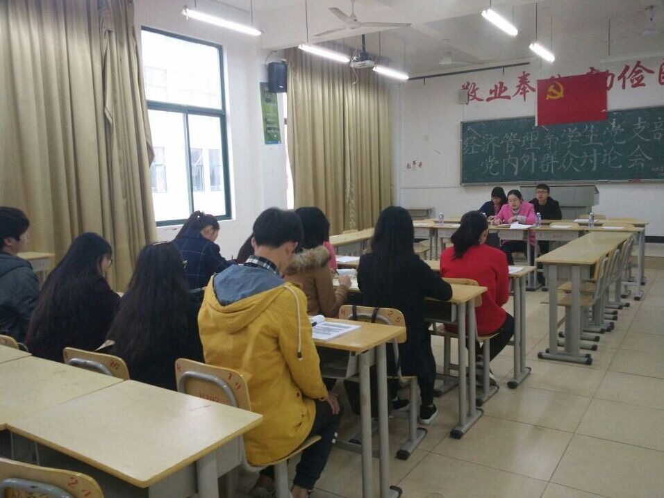 2016年3月29日下午4点,经济管理系于求真楼Bb304教室召开了经济管理系学生党支部党内外群众讨论大会和预备党员思想汇报会。出席两场大会的有经济管理系党务秘书兼学生支部书记周俪老师,1名学生正式党员,9名预备党员以及4名党外群众。