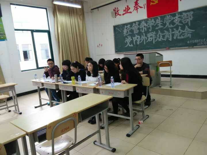 宁德师范学院经济管理系于2016年3月8日下午4:00在求真楼Bb304召开经管系学生党支部党内外群众讨论会。出席本次会议的有:系党务秘书兼学生支部书记周俪,团委书记王佳佳,专职辅导员杜艳芳等老师及党内外群众。会议由周俪老师主持。