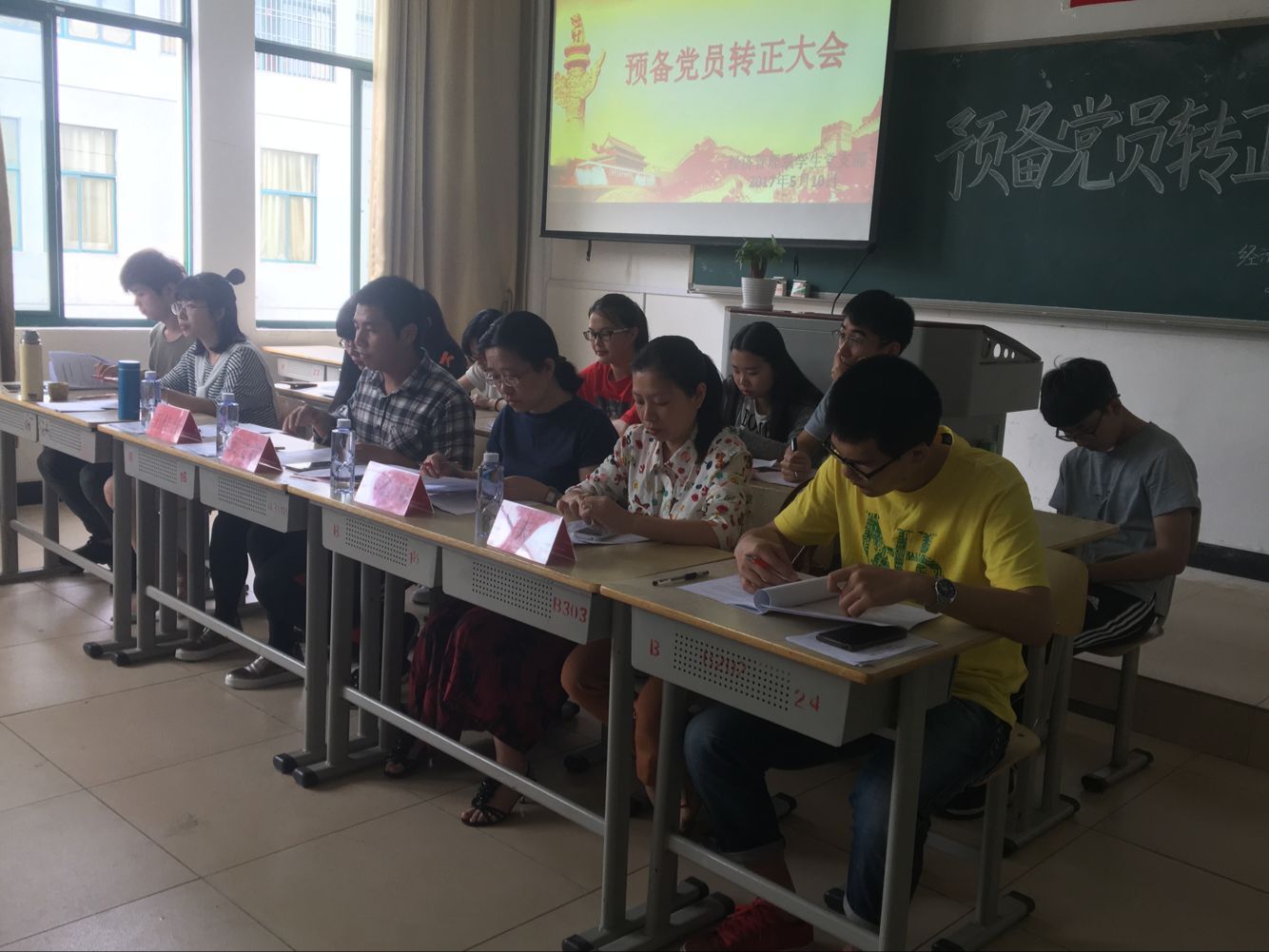 会议由邱文君老师主持。林仕团等10位同志向大会提出转正申请,详细汇报了自己在预备期间的表现,表达了入党的志愿和决心,并对自己在作为一名预备党员期间,在思想、学习和工作上的进步与不足作了认真的总结。汇报结束后,入党介绍人游天嘉、林心雨介绍了10位同志的表现,表示同意按期转正。与会的5位正式党员对10位预备党员进行投票,一致同意林仕团等10位同志按期转正。
