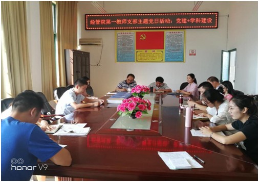 2017年9月19日,经济管理学院教师第一支部在求真楼第二会议室开展“党建+学科建设”主题党日活动。经济管理学院党委书记郑立文、副书记陈新柯以支部党员的身份参加本次活动。