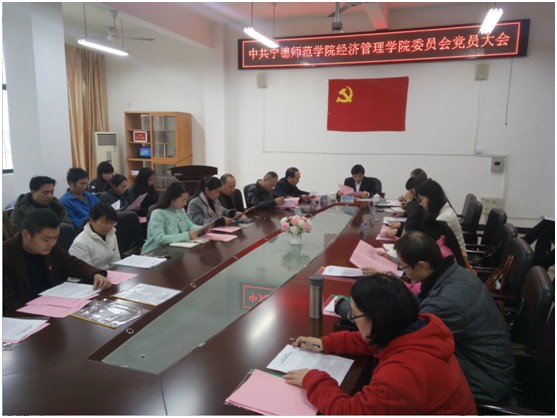 2018年1月24日下午,中共宁德师范学院经济管理学院委员会党员大会暨经济管理学院党委委员选举大会在求真楼召开。校长魏远竹、校党委组织部涂双滨到会指导,经济管理学院师生党员31人参加会议。