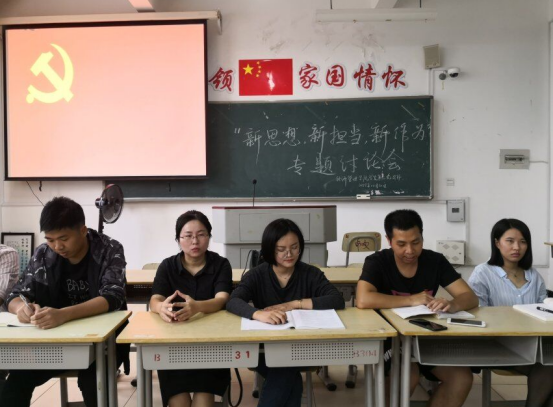 10月10日中午,经济管理学院学生第二党支部在求真楼开展了以“新思想,新担当,新作为”为主题的学习讨论会,号召党员不忘初心,勇于担当,坚持作为,以“钉钉子”精神,努力做好本职工作。经济管理学院杜艳芳、邱文君、欧洋婷、王佳佳等老师与二十多名党支部成员参加学习会。