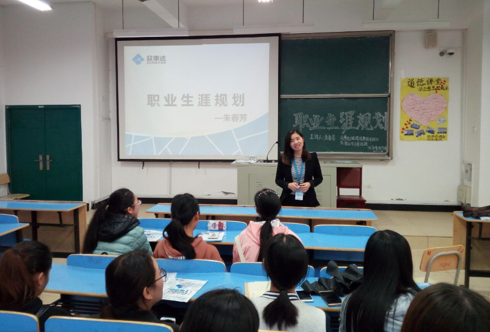 11月29日下午,经济管理学院在求真楼举办以“职业生涯规划”为主题的讲座。主讲人为众事达信息技术股份有限公司人力资源经理朱春芳,我校部分同学参加讲座。