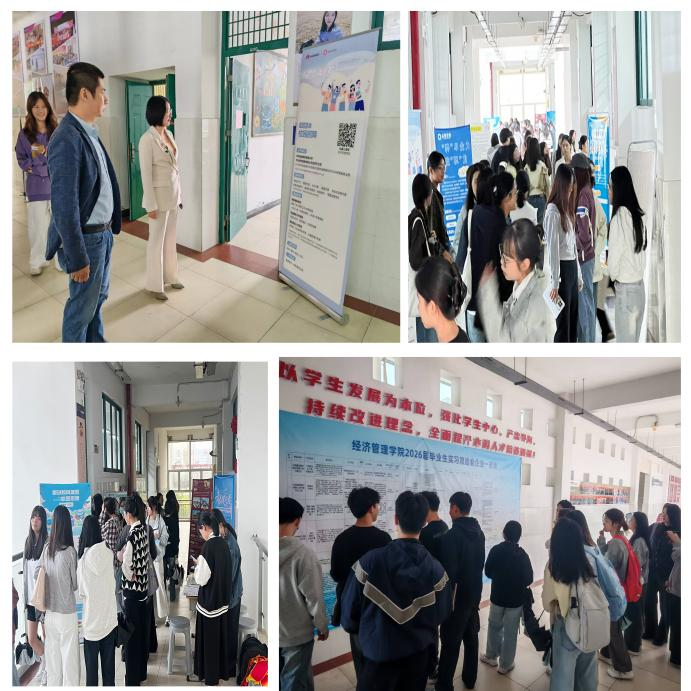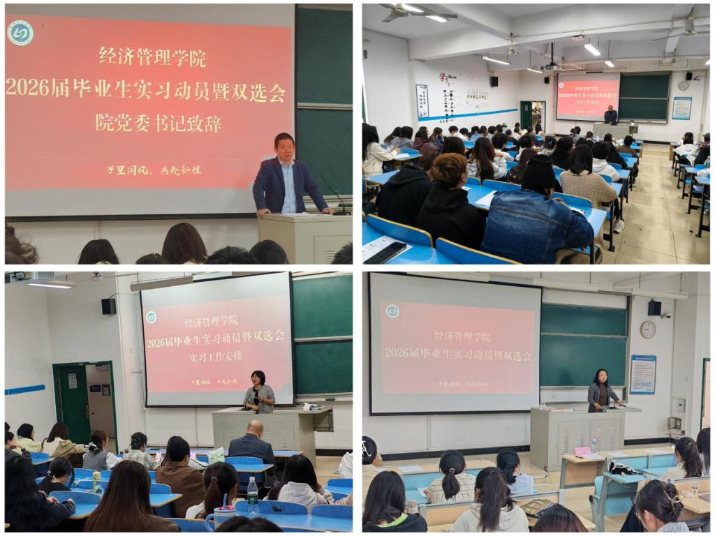 10月23日,经济管理学院以 “精准对接促就业,校企协同助成长” 为主题,分三阶段举办 2026 届毕业生实习动员暨双选会。20余 家涵盖金融、通信、互联网、食品等领域的优质企业代表,学院党政领导、系主任、实习指导教师及全体毕业生参会,搭建起高效的实习就业双向对接平台。